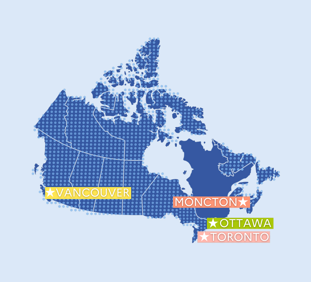 L'Institut français du Canada couvre l’ensemble du territoire canadien en dehors du Québec, depuis quatre bureaux situés à Ottawa, Moncton, Toronto, et Vancouver, rayonnant ainsi sur 9 provinces (Alberta, Colombie-Britannique, Île-du-Prince-Édouard, Manitoba, Nouveau-Brunswick, Nouvelle-Écosse, Ontario, Saskatchewan, Terre-Neuve-et-Labrador) et 3 territoires (Territoires du Nord-Ouest, Yukon, Nunavut).